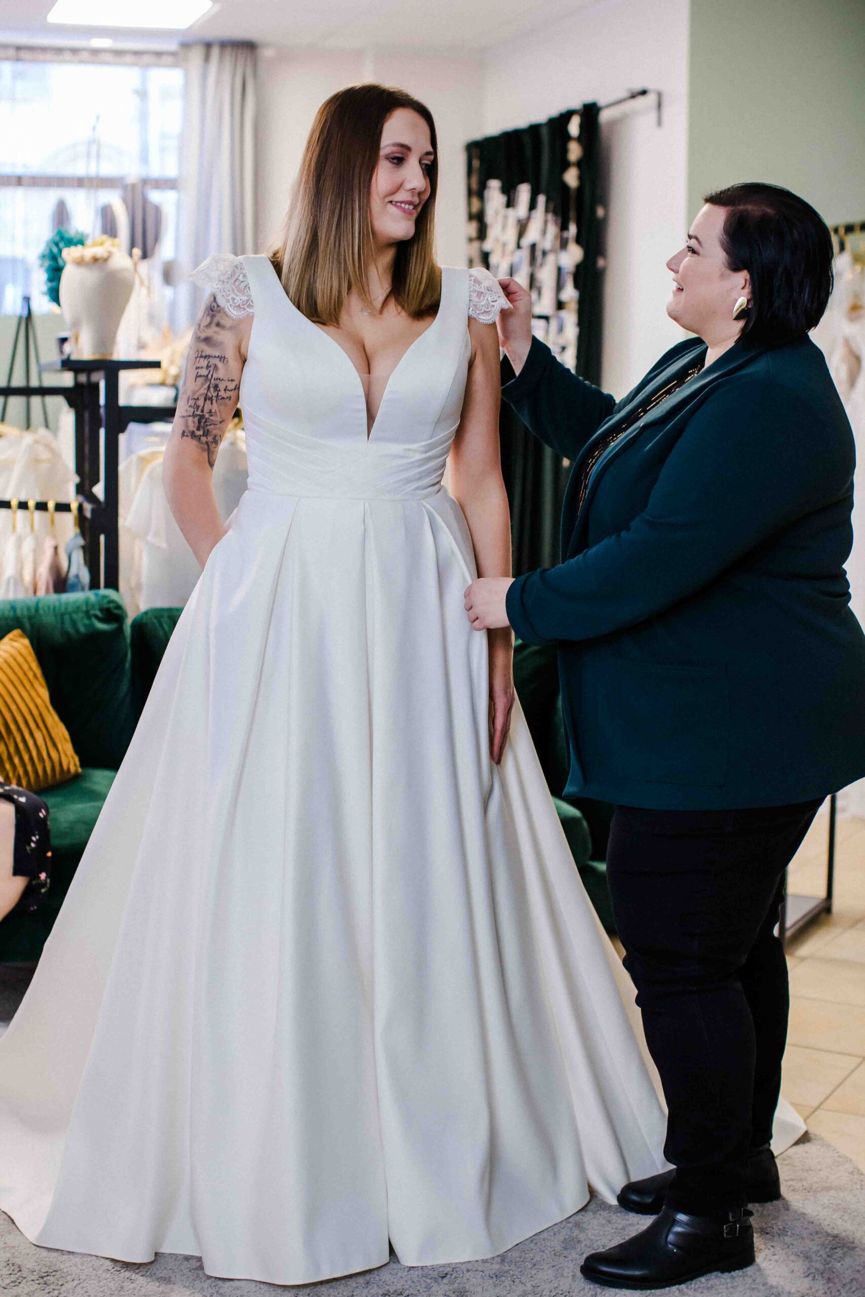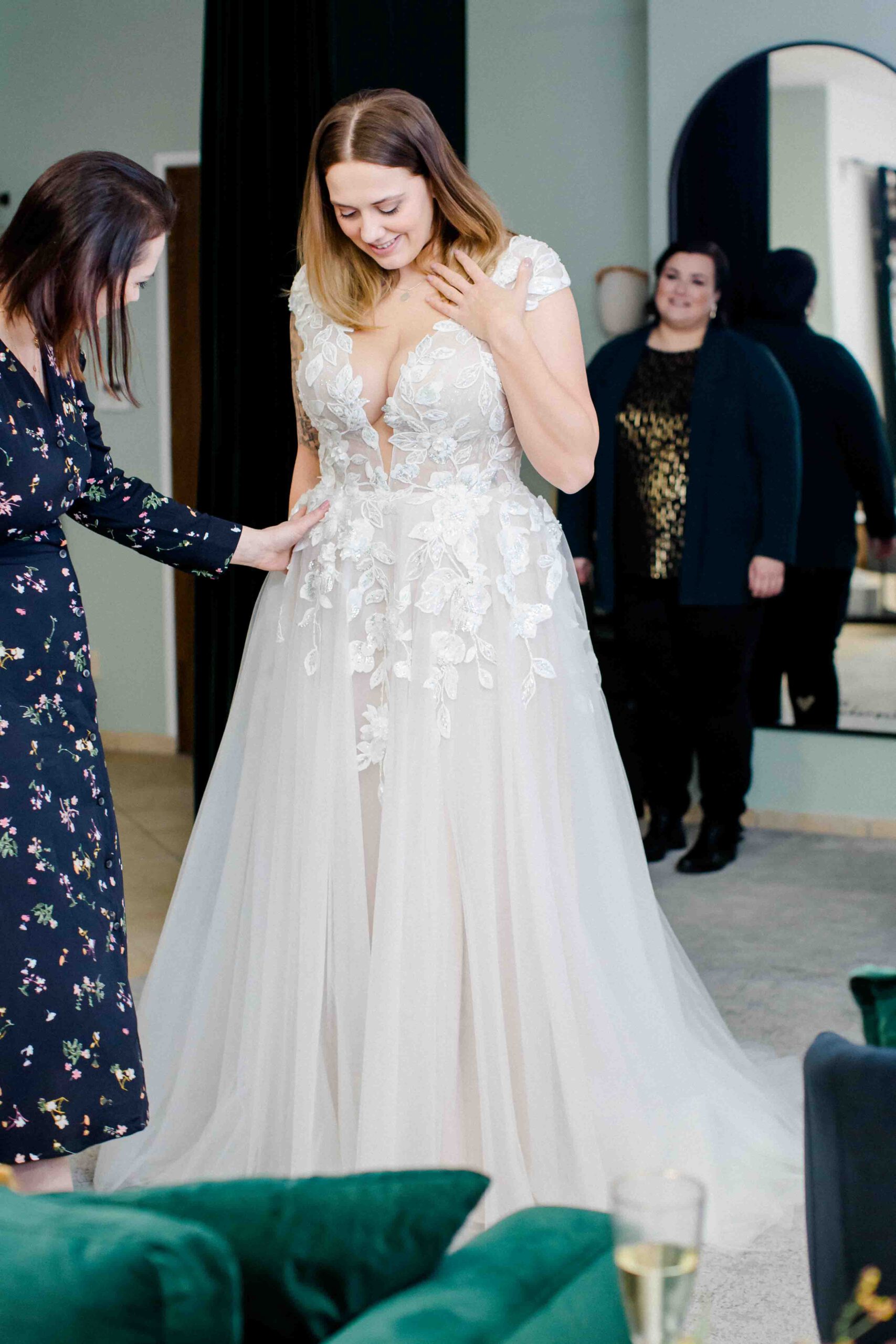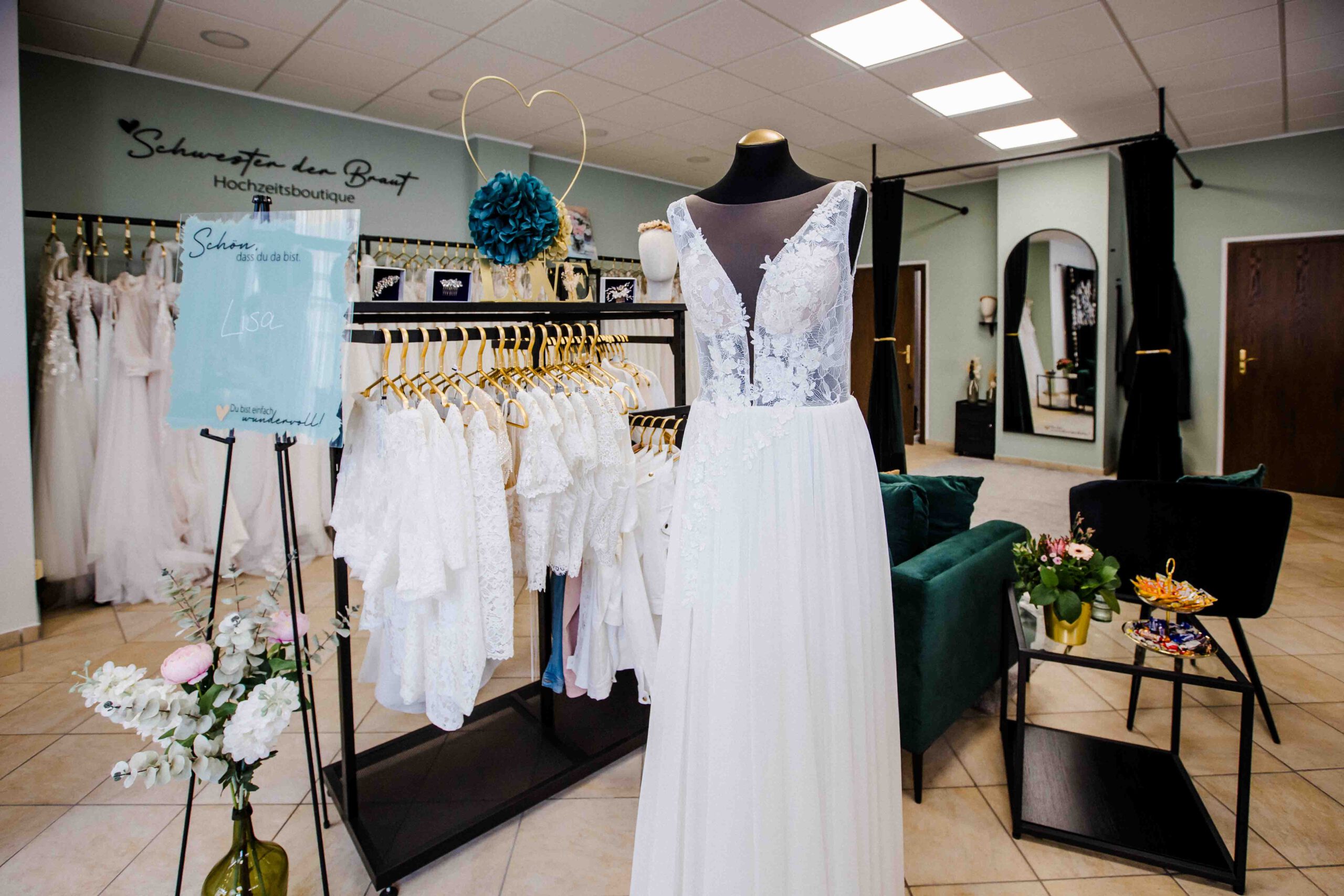 Susann hat mit ihrer Boutique einen besonderen Ort geschaffen. Einen Raum, der bewusst ruhig gehalten ist. Persönlich. Exklusiv. Jede Braut bekommt ihre eigene Zeit – ohne Ablenkung, ohne Hektik. Es geht darum, anzukommen, zu fühlen und herauszufinden, welches Kleid wirklich passt.